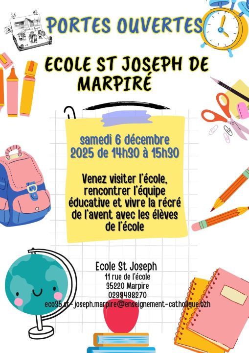 Cette année aura lieu les portes ouvertes de l’école le samedi 6 décembre 2025 de 14h30 à 15h30.